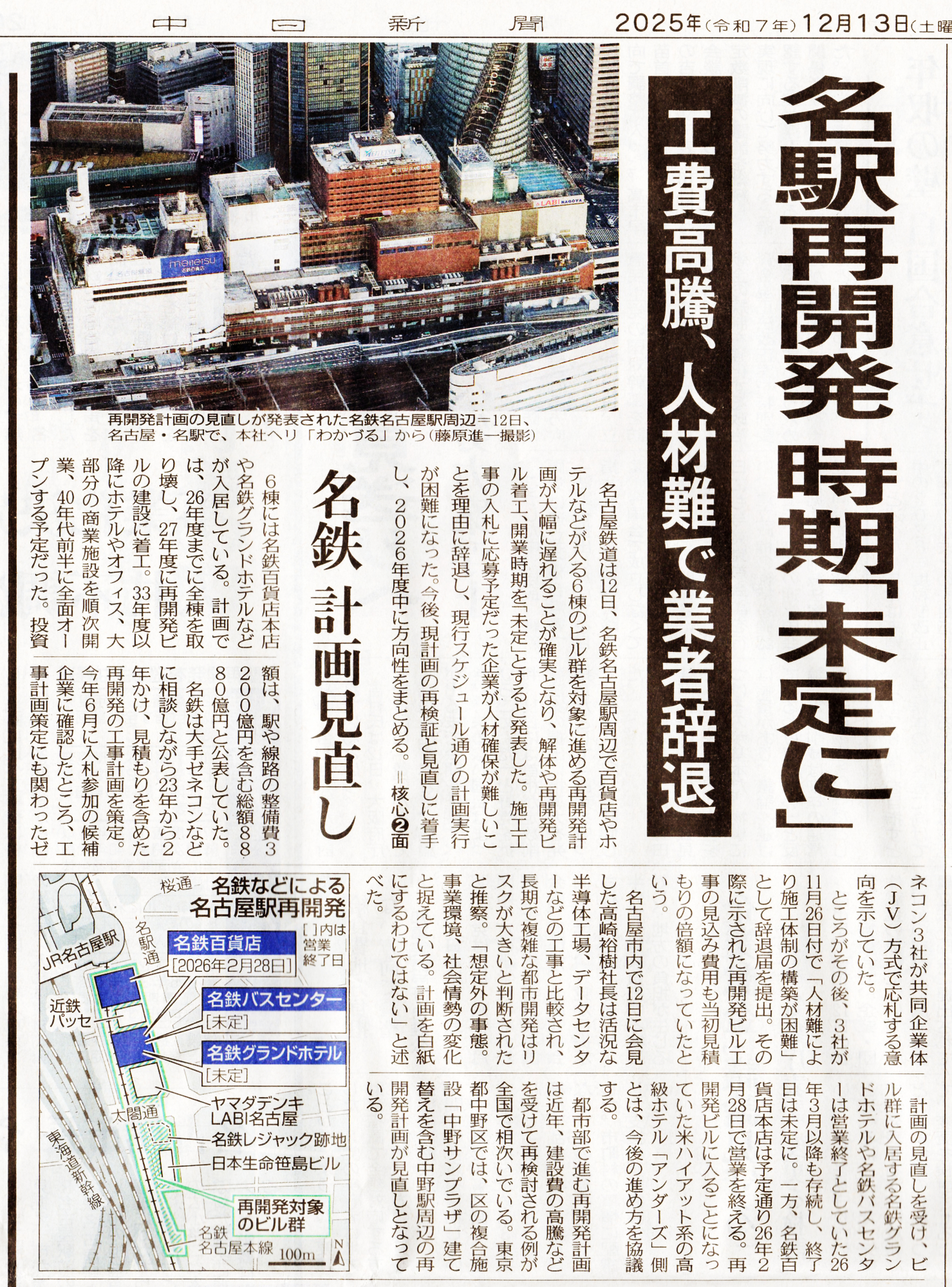 名鉄名古屋駅周辺の再開発スケジュールが計画未定、大幅な見直しへ!